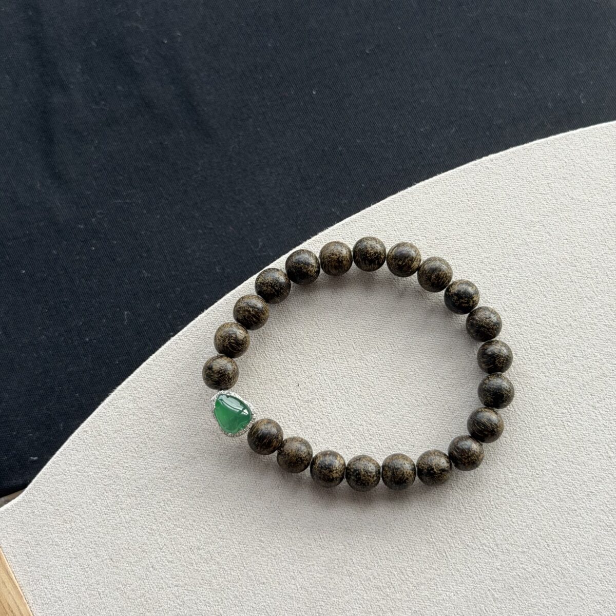 This icy wood-bead jadeite features a primarily Vibrant Green Cabochon palette. In traditional culture, vibrant green cabochon represents vitality, life, and classic elegance. green represents growth and eternal spring. The Beads shape is known for Natural Elegance and personal charm, carrying a message of good fortune and style.