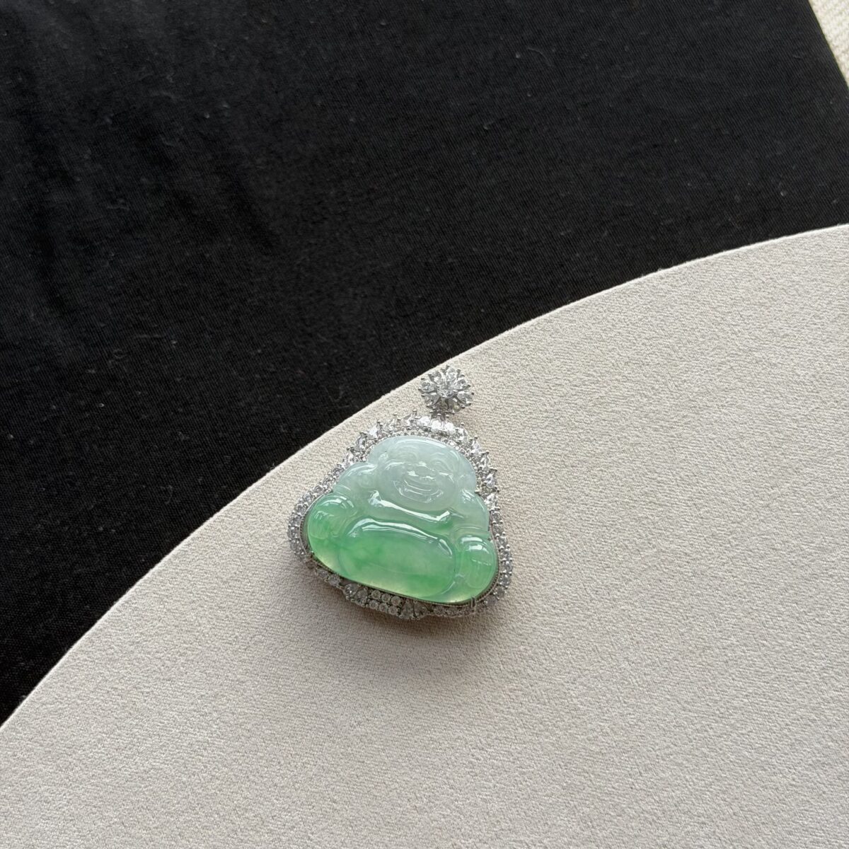 This exquisite Buddha pendant is selected for its high icy translucency and vibrant ‘Imperial Green’ palette, representing the pinnacle of natural jadeite quality.