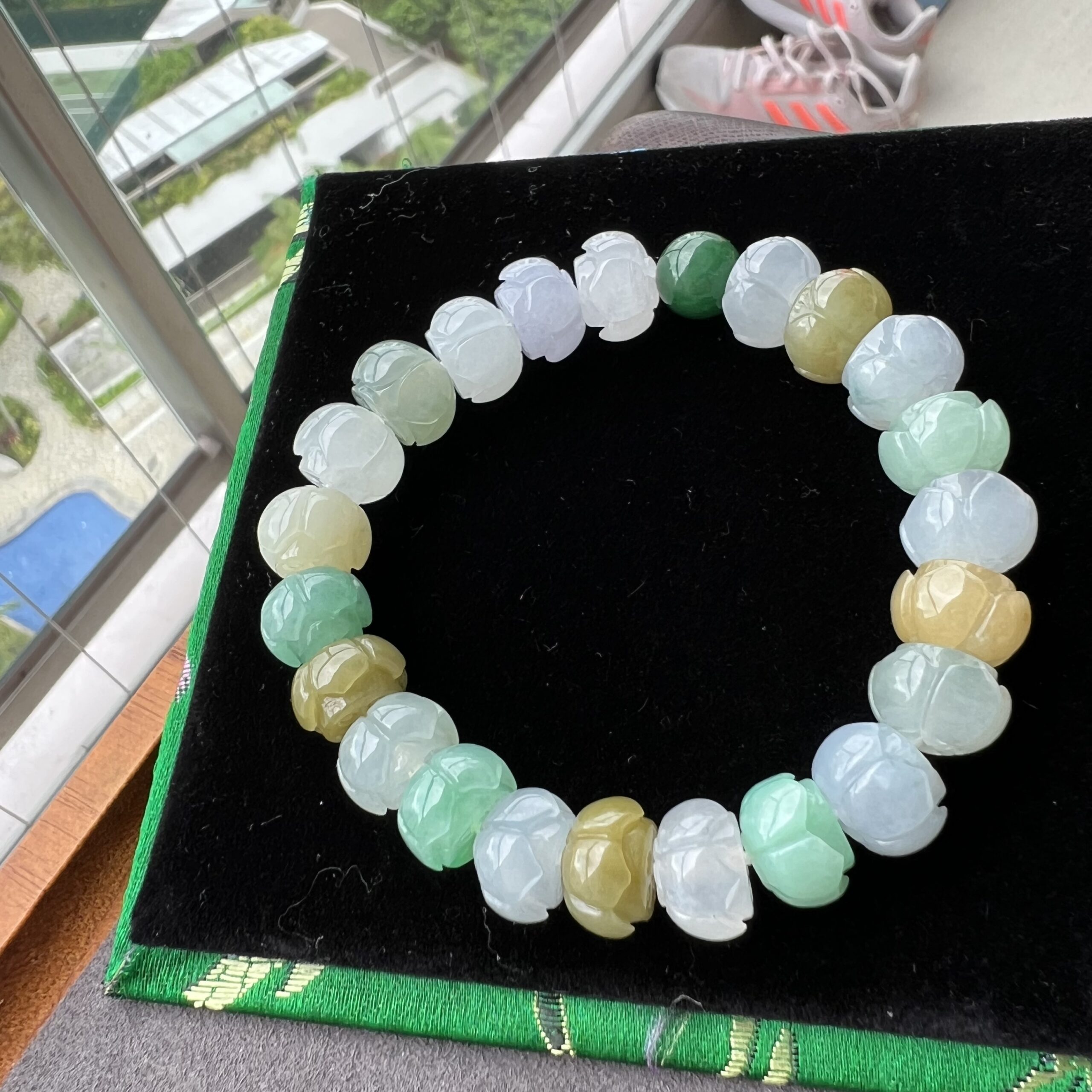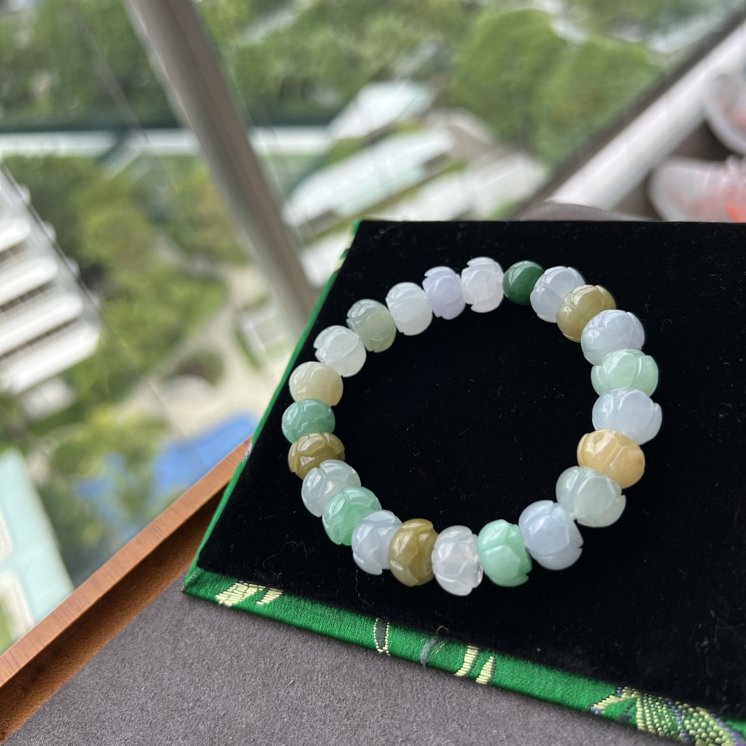 Hand carved lotus shape bracelet. High Icy – Glass texture.