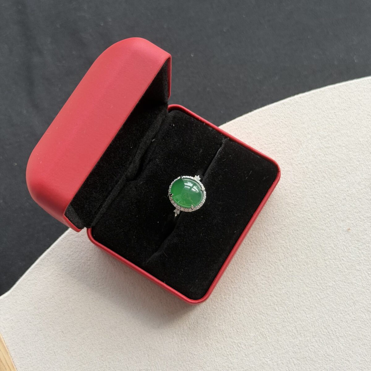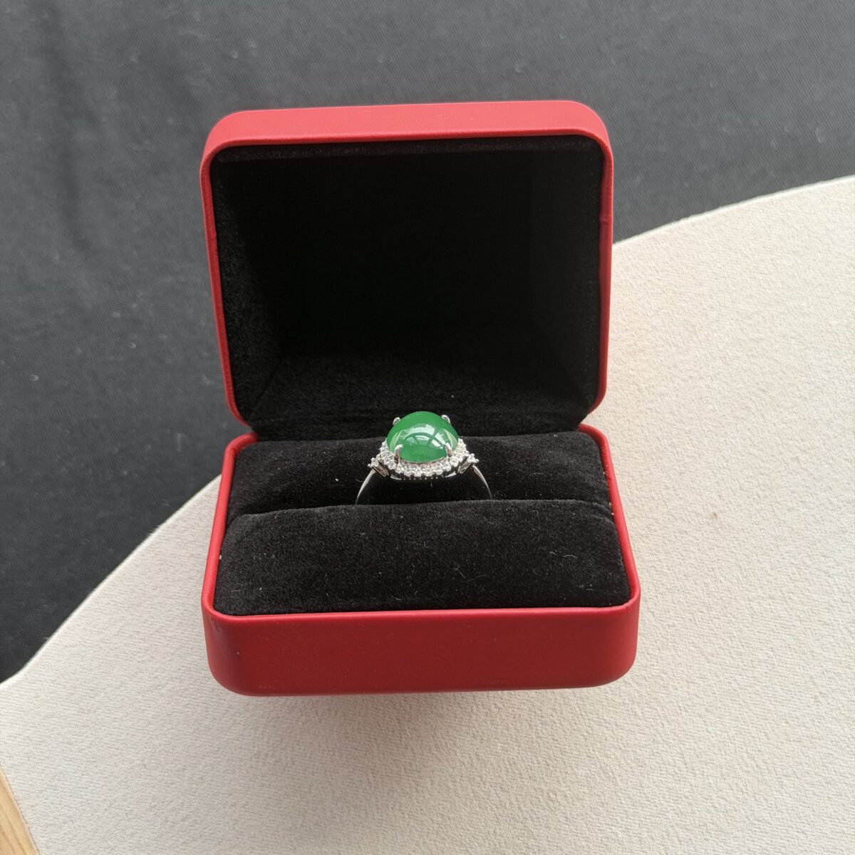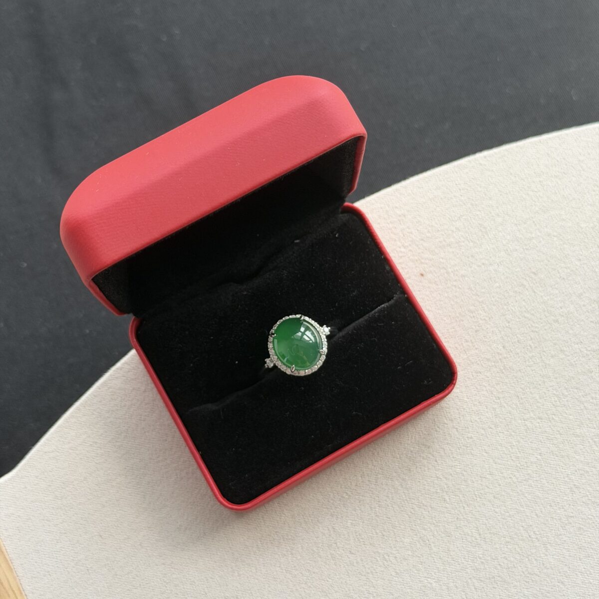 This natural jadeite features a primarily Green palette. In traditional culture, green represents vitality, life, and classic elegance. green represents growth and eternal spring. The Cabochon shape is known for Timeless Elegance – a pure display of the jadeite’s natural luster.