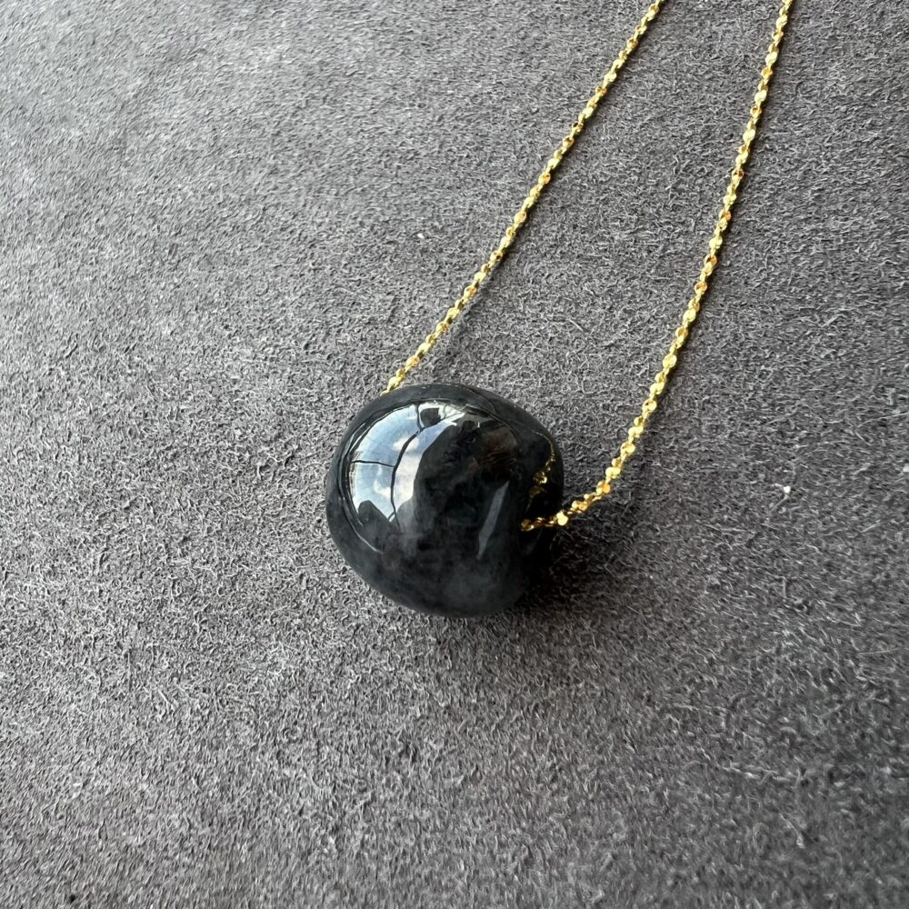 This Icy jadeite features a primarily Wu Ji / Black palette. In traditional culture, Wu Ji / Black represents natural quality and classic beauty. The Round shape is known for Natural Elegance and personal charm, carrying a message of good fortune and personal style.